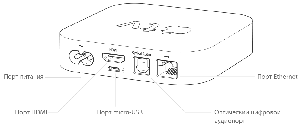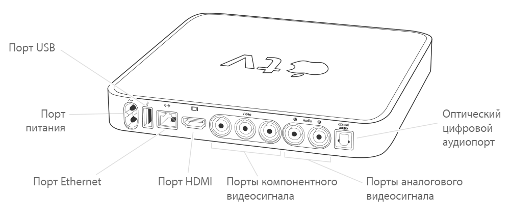 Компания Apple внедряет в работу собственных устройств множество полезных технологий. Например, AirPlay, с помощью которой можно достаточно быстро настроить синхронизацию телевизора с компьютером или лэптопом. Управление будет осуществляться дистанционным пультом, который включен в базовую комплектацию приставки. ПДУ также можно использовать в качестве компьютерной мыши.