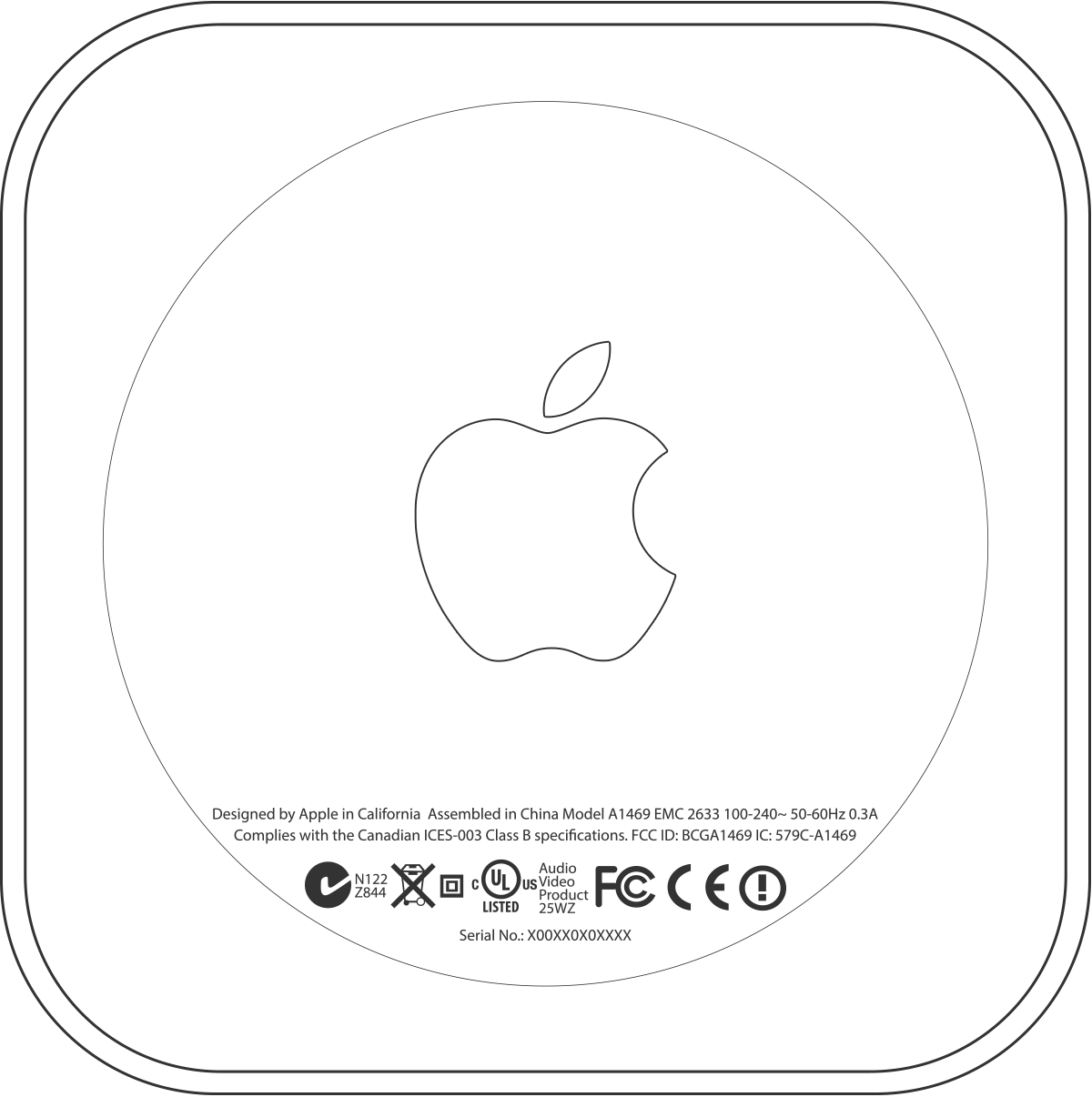 Чтобы узнать номер модели, проверьте наклейку с информацией, расположенную на нижней панели Apple TV.