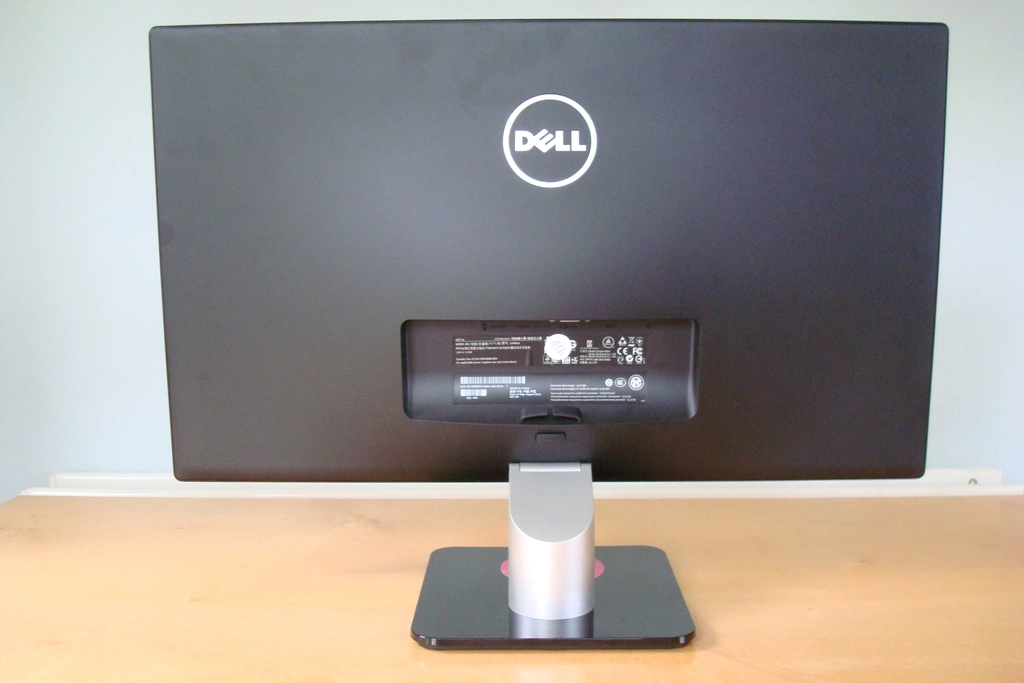 The rear of the monitor has a matte black plastic finish, complimenting the matte silver plastic stand neck and Dell logo.