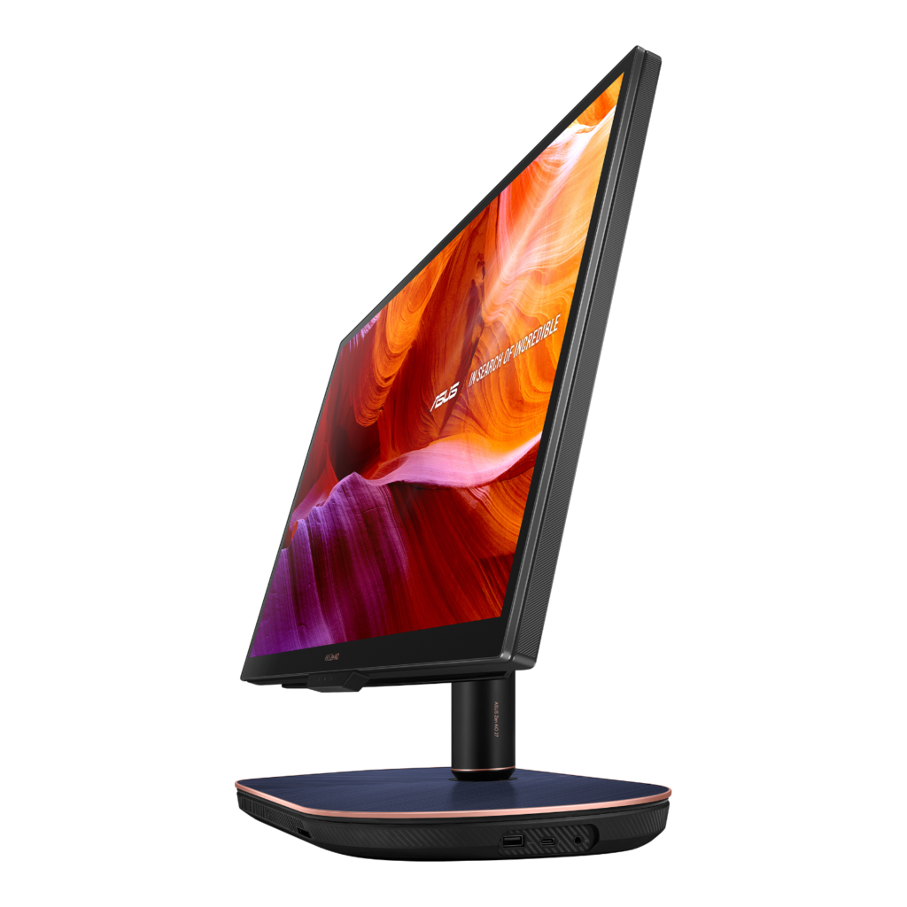 Разрабатывая ASUS Zen AiO 27 Z272SD, инженеры компании руководствовались не только технической частью, но и дизайнерской составляющей. Корпус выполнен в темно-синей расцветке и имеет окантовку розового золота, из-за чего выглядит очень изящно. А поскольку системные компоненты собраны в элегантной подставке, толщина устройства остается минимальной.