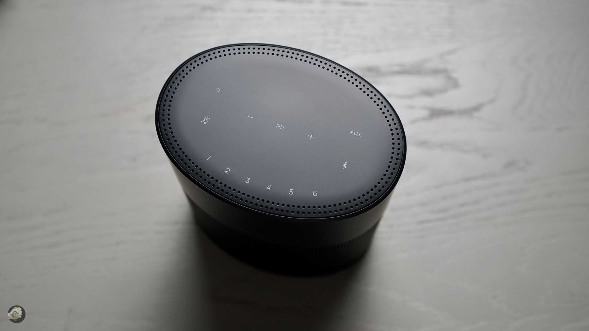 В отличие от Bose Home Speaker 500, тут нет экранчика, но, если честно, я никакой боли не ощутил. Хотите — выбирайте источники звука, нажимая на иконки на верхней части колонки, хотите — пользуйтесь приложением. Тут ведь, кроме AirPlay 2, есть ещё и Bluetooth, и 3,5-мм вход. Если боитесь, что микрофоны в системе используют против вас — их можно отключить физически, для этого есть кнопка прямо на колонке.