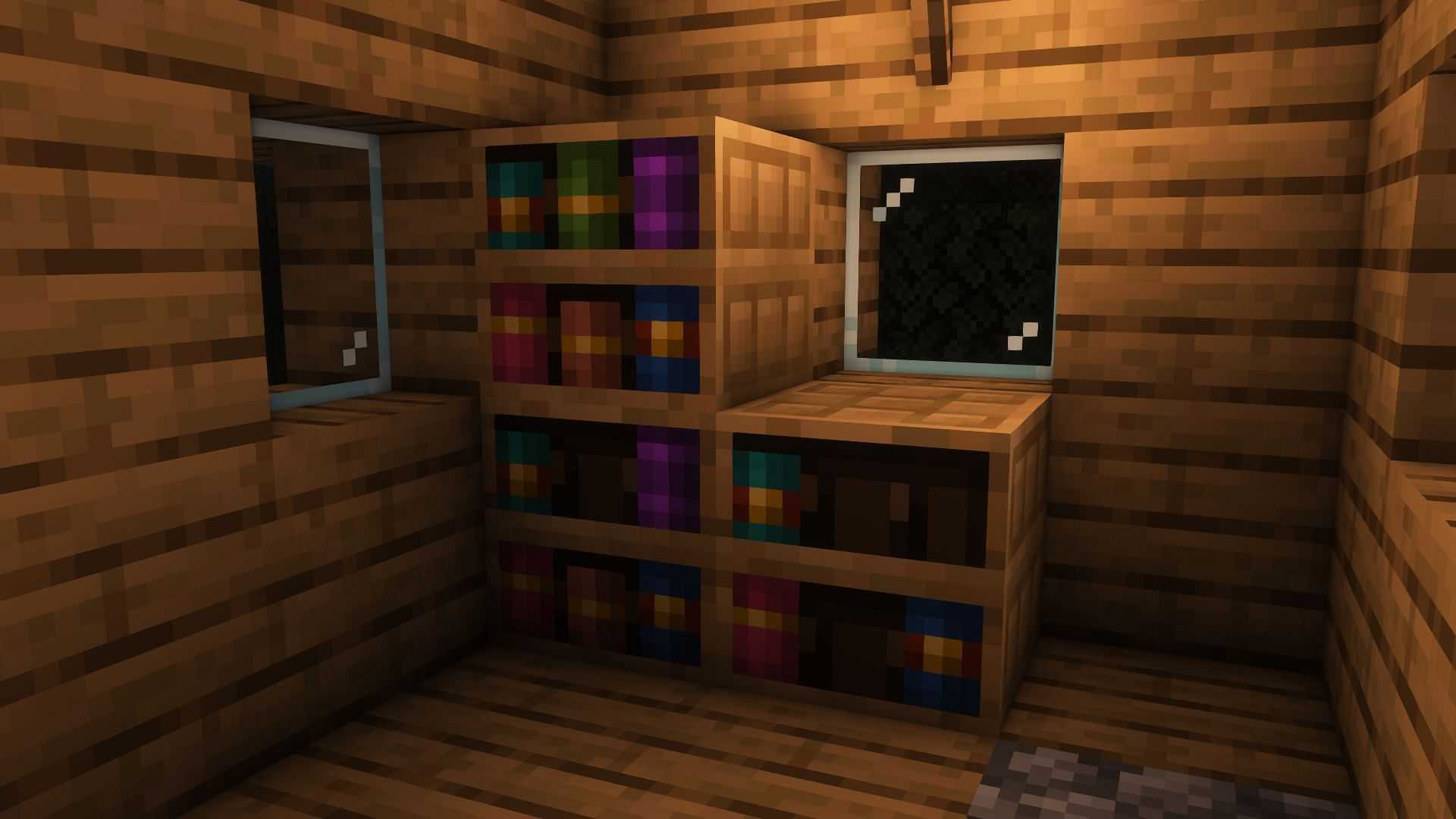 Это функциональная вариация книжных полок , на которой игроки могут размещать книги, зачарованные книги, книги и перья. Игроки предложили разработчикам добавить вариант точеной книжной полки для каждого типа дерева. Они также предложили, чтобы эта новая книжная полка работала с воронками.