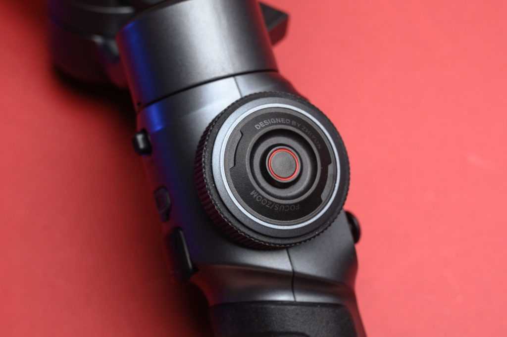 И самое интересное – на левой грани расположилось колесо управления зумом и фокусом. Ход колеса очень плавный, что позволяет точно регулировать зум. При нажатии на центральную кнопку функция колеса изменяется на управление фокусом и обратно на зум. Единственный момент — управление фокусом работает исключительно в ручном режиме, то есть если у вас в приложении ZY Cami будет установлен автоматический режим, то управление фокусом не активируется.