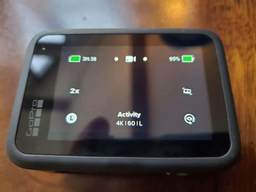 The GoPro Smart Remote has a small status screen that mirrors the Hero7 Black front status screen. It shows you stuff like mode, battery level, and available memory.