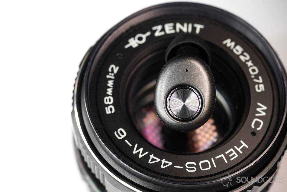 На внешней панели наушников имеется кнопка, изящно вписанная в корпус, одновременно являясь функциональным элементом и украшением. Нажатие происходит мягко, не навязчиво, и это правильно, ведь наушники в ушах держаться только за счёт силы трения, и поэтому тугая кнопка полностью бы испортила эргономику обращения с ними.