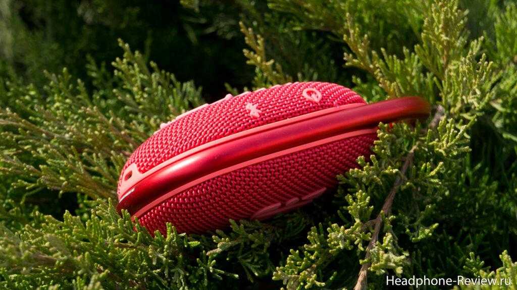 Корпус защищен от воды по стандарту IP67. Это означает, что Clip 4 можно даже погружать в воду, но я обычно не рекомендую такие эксперименты и предлагаю считать такой уровень защиты чем-то из разряда ”на всякий случай”. Главное, что можно не бояться ее намочить, а под водой ее все равно не будет слышно.