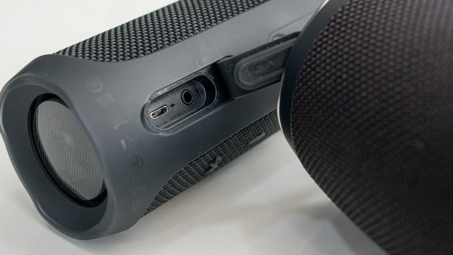 Проводные интерфейсы устройства застегиваются оранжевой молнией на тыльной стороне. Здесь расположены два порта USB, вход AUX 3.5-мм, гнездо для зарядки и microUSB разъем. Последний предназначен только для обновления прошивки Xtreme, что требует ее подключения к ПК.