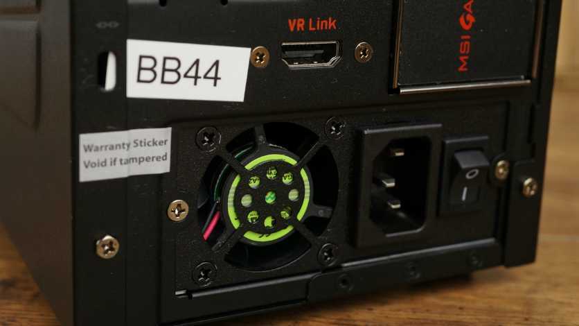 Используя прилагаемый кабель HDMI, вы можете подключить один порт HDMI-выхода на одной из карт GTX 1080 к порту VR Link, который передает видеосигнал на порт на передней панели. Таким образом, вам не нужно тянуться за рабочим столом, чтобы подключить гарнитуру VR. Corsair One Pro имеет аналогичный порт HDMI на передней панели, что более удобно, чем подключение на задней панели на больших настольных компьютерах, таких как Digital Storm Velox. Это очень удобно, если вы используете несколько VR-гарнитур или хотите отключить и хранить их, когда они не используются.