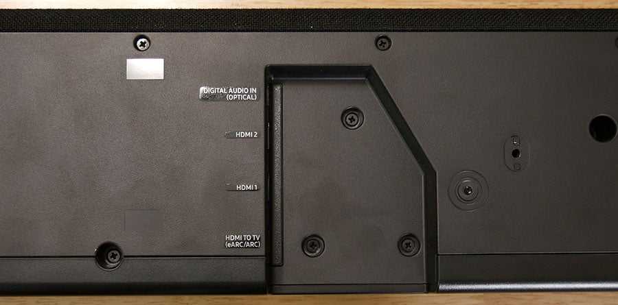 - Three of the soundbar’s speakers fire out, toward the viewers, and two project upwards. Credit: Reviewed.com / Dave Swanson