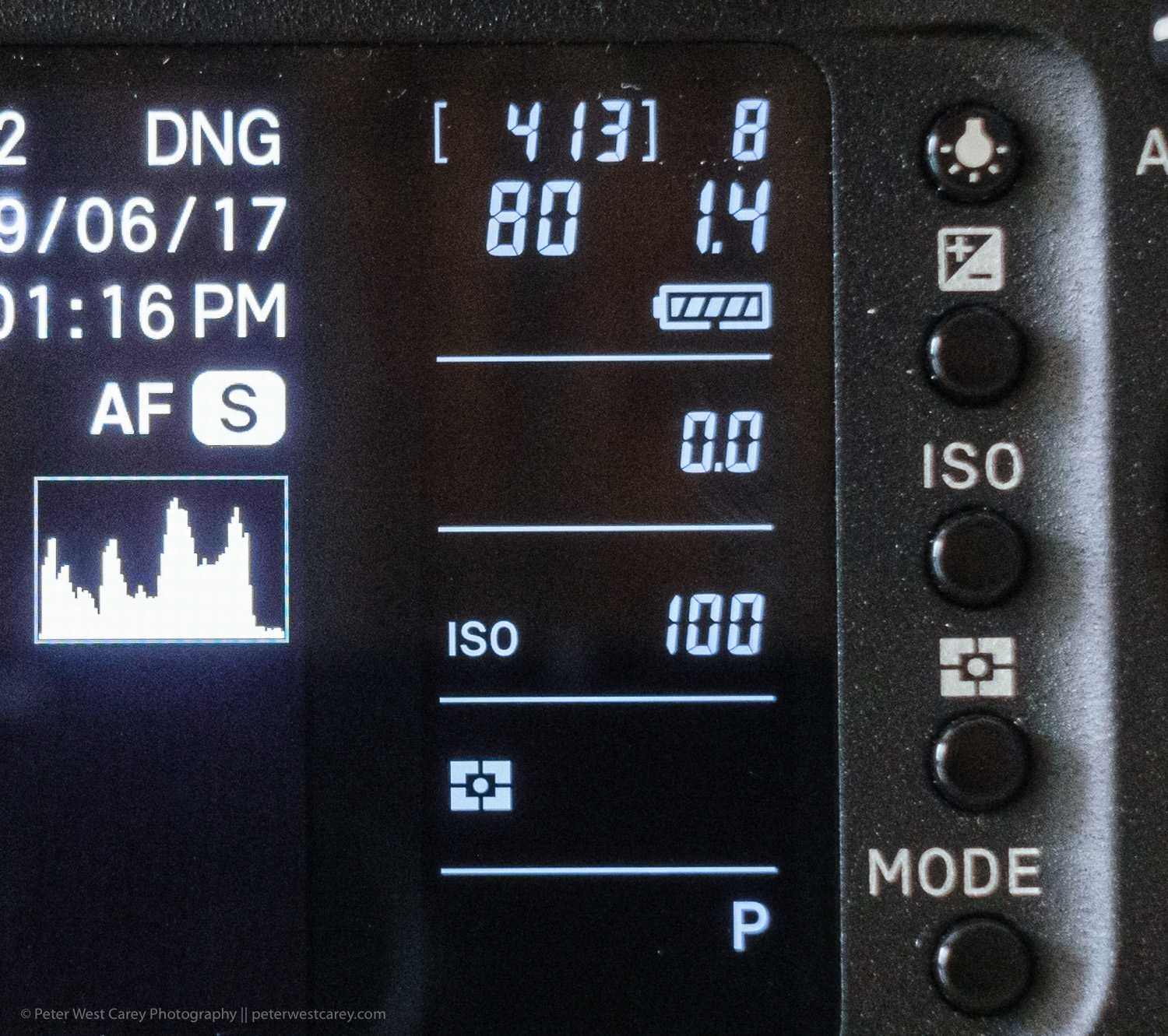 As with other mirrorless cameras, having the histogram displayed in the viewfinder is a boon, especially when the dynamic range of the camera is less than 10-stops. Keeping the exposure correct with a histogram to help analyze a scene is very useful.