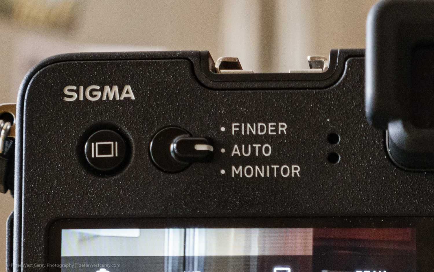 Also on the rear of the camera is a selector switch for using the viewfinder LCD or the rear camera monitor while shooting. I found the camera was often slow in switching from the rear monitor (on most of the time the camera shutter has been pressed halfway to activate auto-focus) to the viewfinder. This slight lag in switching became annoying in constant use and while quickly reviewing images on the rear screen before commencing further image acquisition.