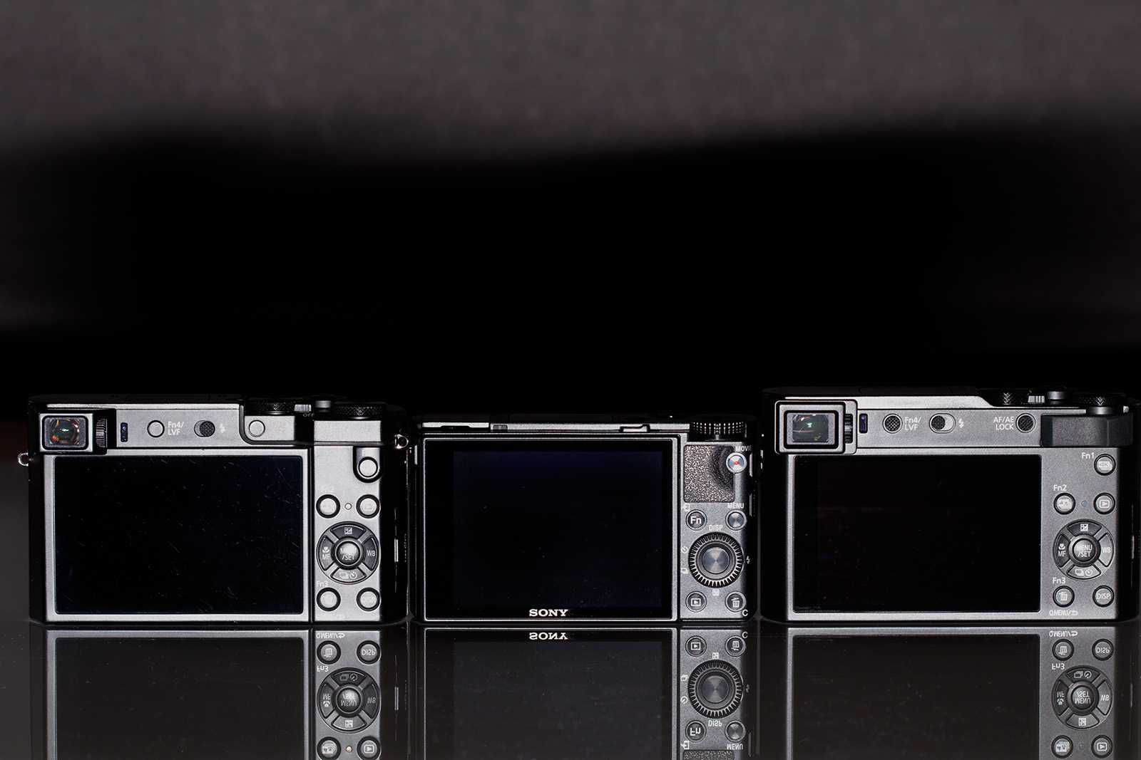 На Sony RX10 есть второе кольцо — с маркировкой диафрагменных чисел. Оно имеет два режима работы (переключается рычажком). Первый, с щелчками, — для управления диафрагмой при фотосъемке, а второй, с плавным ходом, предназначен для видеосъемки. Отличаются две псевдозеркалки и по конструкции ЖК-экрана. У Panasonic FZ1000 он поворотно-откидной: откидывается в сторону и крутится на шарнире в любую сторону.