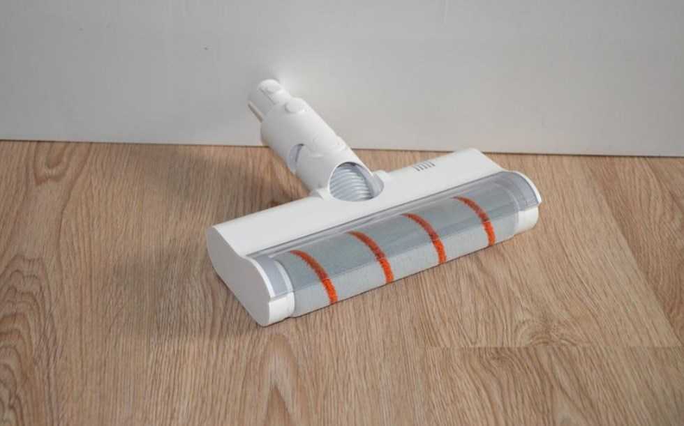 - Влажная уборка с помощью дополнительной насадки с микрофиброй. Вода подается через сопло, емкость резервуара — всего 200 миллилитров, чего хватает примерно на один полный цикл уборки помещения, площадью до 120 м 2 .