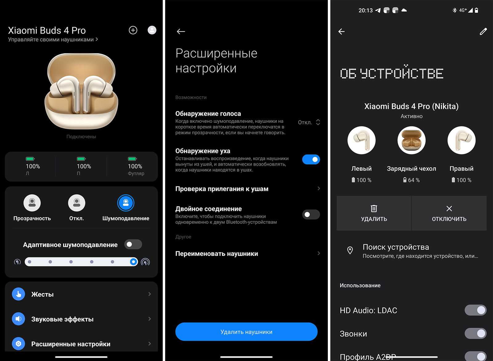 ANC, режим прозрачности, адаптивный режим