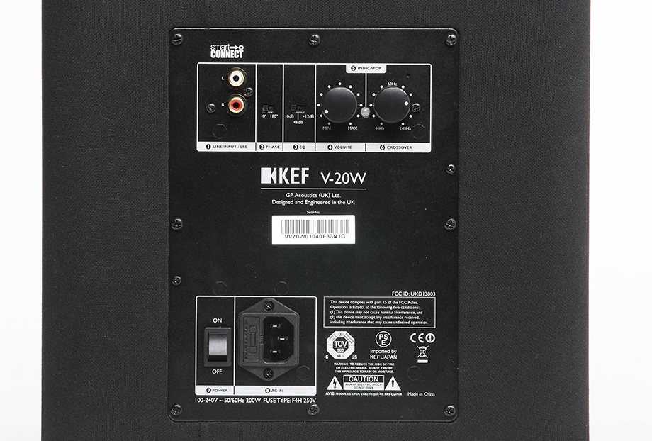 Управление сабвуфером комплекта KEF V720 W вполне стандартно. Единственный вход — линейный
