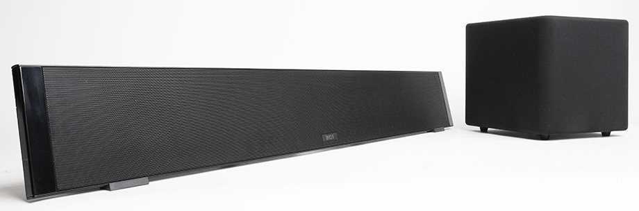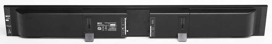 Необычную модель, собранную в узком стальном корпусе (53 мм), предлагает британская компания KEF. Дело в том, что серия V позиционируется исключительно как замена телевизионных динамиков. Об этом говорит отсутствие линейного входа и управление исключительно CEC-командами с телевизора через HDMI-подключение. Никаких дополнительных функций, декодеров, режимов не предусмотрено, кроме регулировки громкости сабвуфера и кнопки оптимизации звука в зависимости от установки (на стене или на полке). Чтобы добиться малой толщины аппарата, инженеры KEF разработали новые динамики с плоскими диффузорами. При диаметре 115 мм их толщина составляет всего 30 мм. Саундбар воспроизводит лишь два канала — левый и правый, на которые приходится по два плоских динамика и фирменному твитеру с алюминиевым вентилируемым куполом и лепестковым рассеивателем.