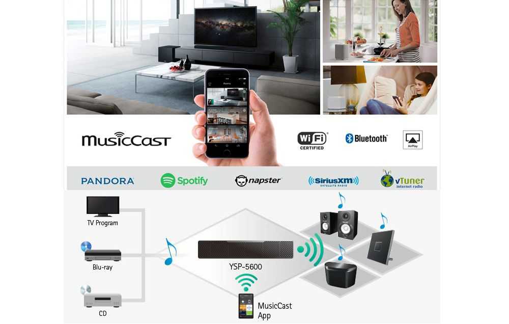 Японская компания Yamaha широко известна во всем мире своей продукцией, в частности высококачественным аудио оборудованием и акустическими системами. Особенно компания в последнее время преуспела в реализации новой серии моделей YSP, в которой применена усовершенствованная технологическая разработка эффекта «звукового луча». YSP-5600 располагает множеством настоек, изменение порядка объемного звука, так же можно включить просто стерео режим.