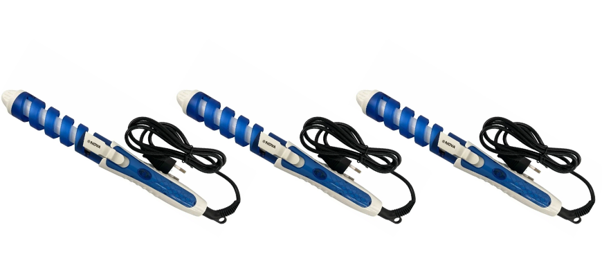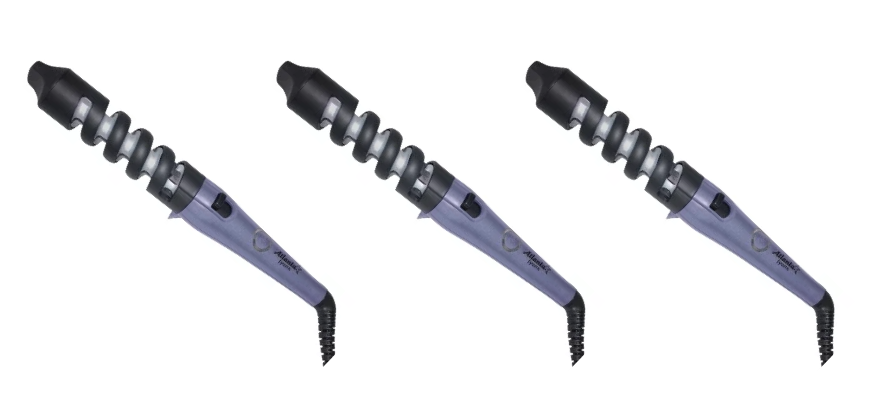 Не самый типичный вариант среди спиральных плоек. Его валик не имеет желобов для укладки прядей, вместо него по всей длине размещён спиральный гребень. Именно он не позволяет волосам выскользнуть и заставляет их принимать определённую форму. Валик радует качественным керамическим покрытием, которое снимает излишнюю электризацию. Шнур имеет подвижное крепление, на корпусе предусмотрена петля для подвешивания. Также существует и выдвижная подставка для установки плойки на столе.