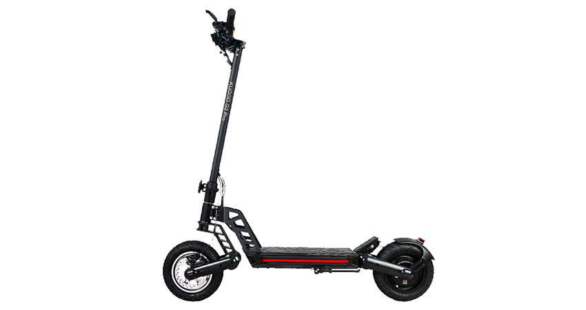 Ширина колес – 10 дюймов, что позволяет перемещаться по любому покрытию. Из-за своего материала электроскутер имеет в весе 25 кг – больше чем остальные модели в рейтинге – а значит ребенку или женщине будет сложно с ним управляться. Однако одновременно с этим он способен поднять груз до 150 килограмм. На этом отличия скутера от прежних моделей не заканчивается: помимо прочего, он имеет пневматическую подвеску, сохраняющую плавность движения даже при сложном рельефе.