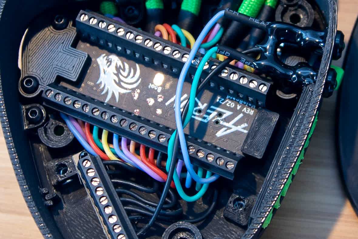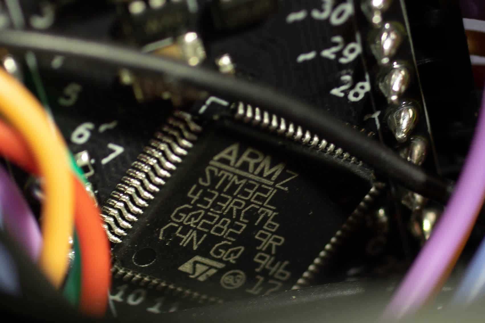 Если перевернуть плату, то мы увидим там одноядерный 32-битный микроконтроллер ARM Cortex STM32. В интернете пишут, что предыдущие версии (до 2021 года) были на Teensy++ 2.0 платах, но их сняли с производства, вынудив Azeron перейти на другую платформу.