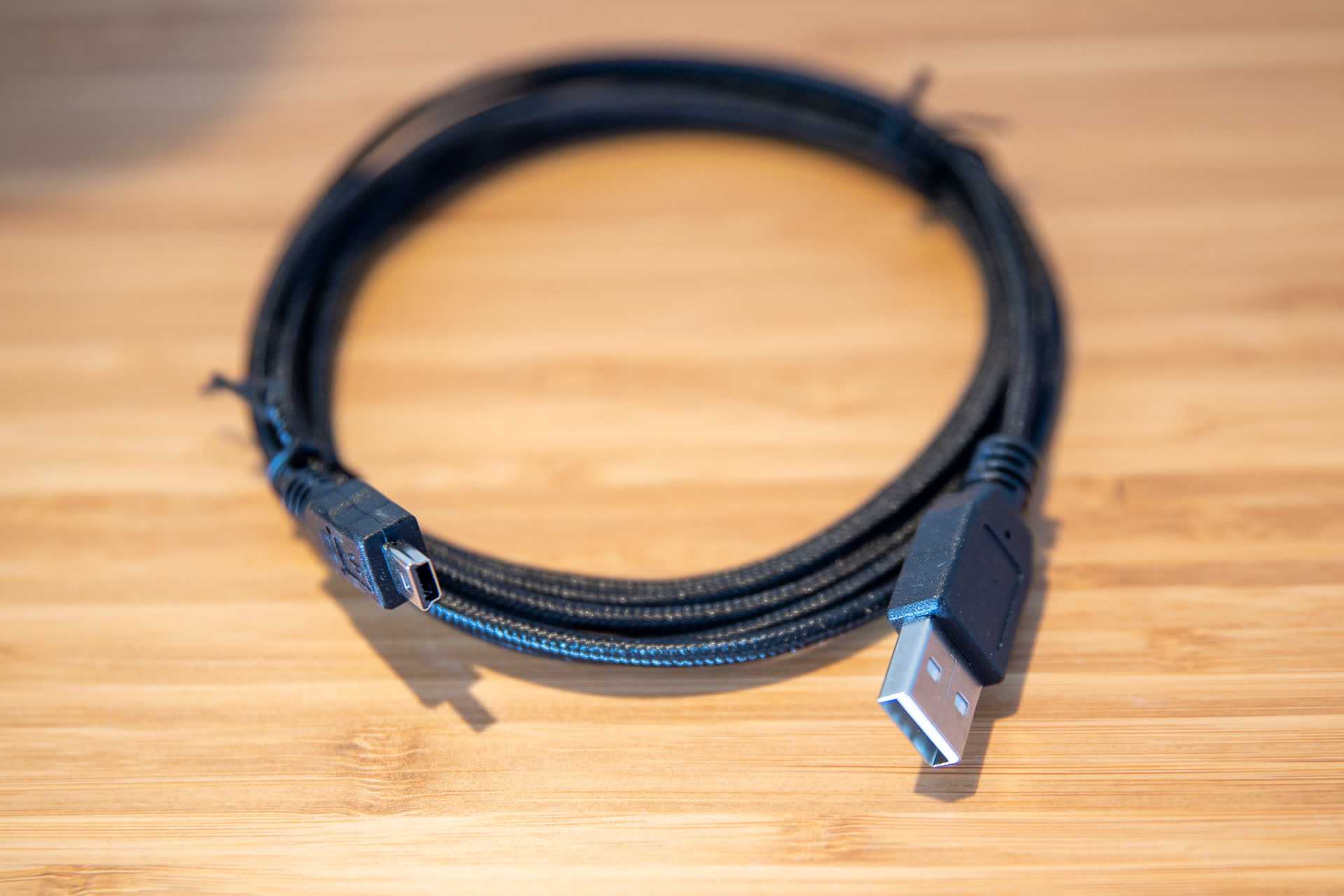 Устройство подключается через кабель USB 2.0 с разъемом Mini Type-B и длиной 2 метра. Диаметр кабеля 3.2 мм и тканевая оплетка делают его очень гибким и послушным.