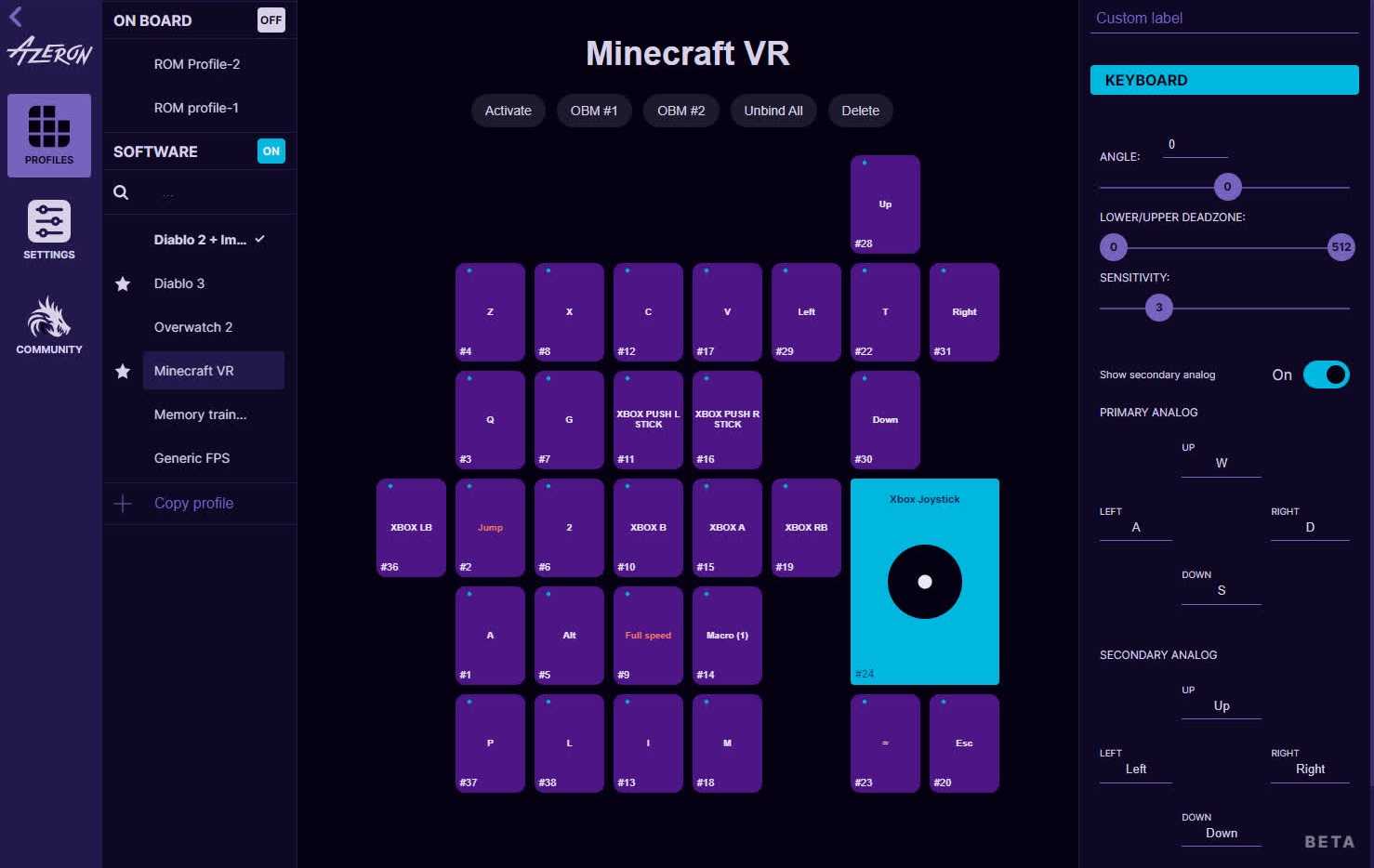 Однако, есть возможность использовать и софтверные профили, коих может быть сколько угодно. Но для этого нужно запускать программу и активировать нужный профиль. Если же добавить дополнительный софт, например ReWASD, то можно настроить активацию определенного Azeron-профиля при запуске конкретной игры. Но ReWASD стоит денег, и тут уже вам решать — заплатить один раз или менять профили ручками. Надеюсь Azeron допилят свой софт и добавят возможность активации профилей в зависимости от запуска конкретных .exe файлов.