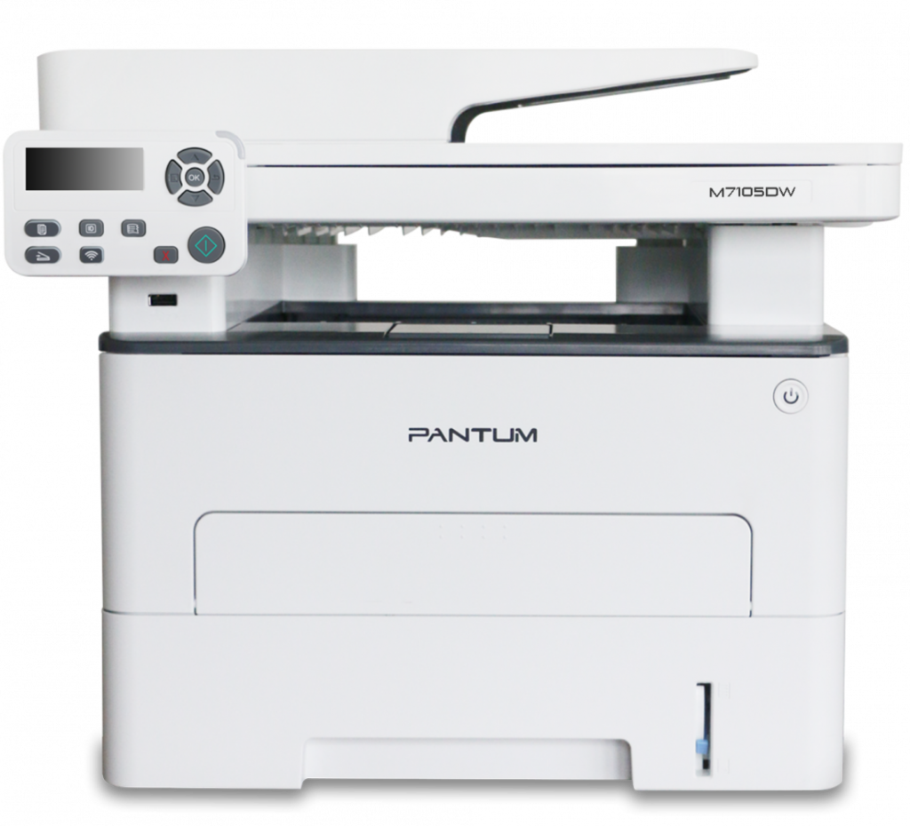 Pantum M7105DW — монохромное многофункциональное устройство с поддержкой печати, сканирования и копирования. Разрешение для всех типов работ весьма впечатляющее 1200 dpi, при том что стоимость намного ниже, чем у конкурентов с аналогичными характеристиками и функциональностью. К ПК подключается по USB или RJ-45. Драйвера есть под все наиболее популярные настольные операционные системы и устанавливаются буквально за один клик мышью.