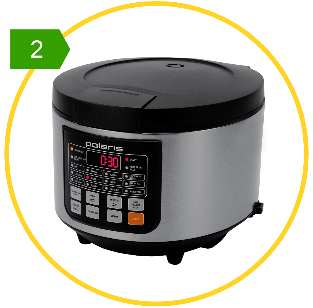 - Polaris. Предлагает мультиварки европейского дизайна, которые органично вписываются в интерьер и имеют множество функций. Производитель адаптирует устройства под потенциальных покупателей, а потому, помимо стандартных, в некоторых моделях есть и специфические режимы — «Варенье», «Пельмени», «Холодец», «Творог».