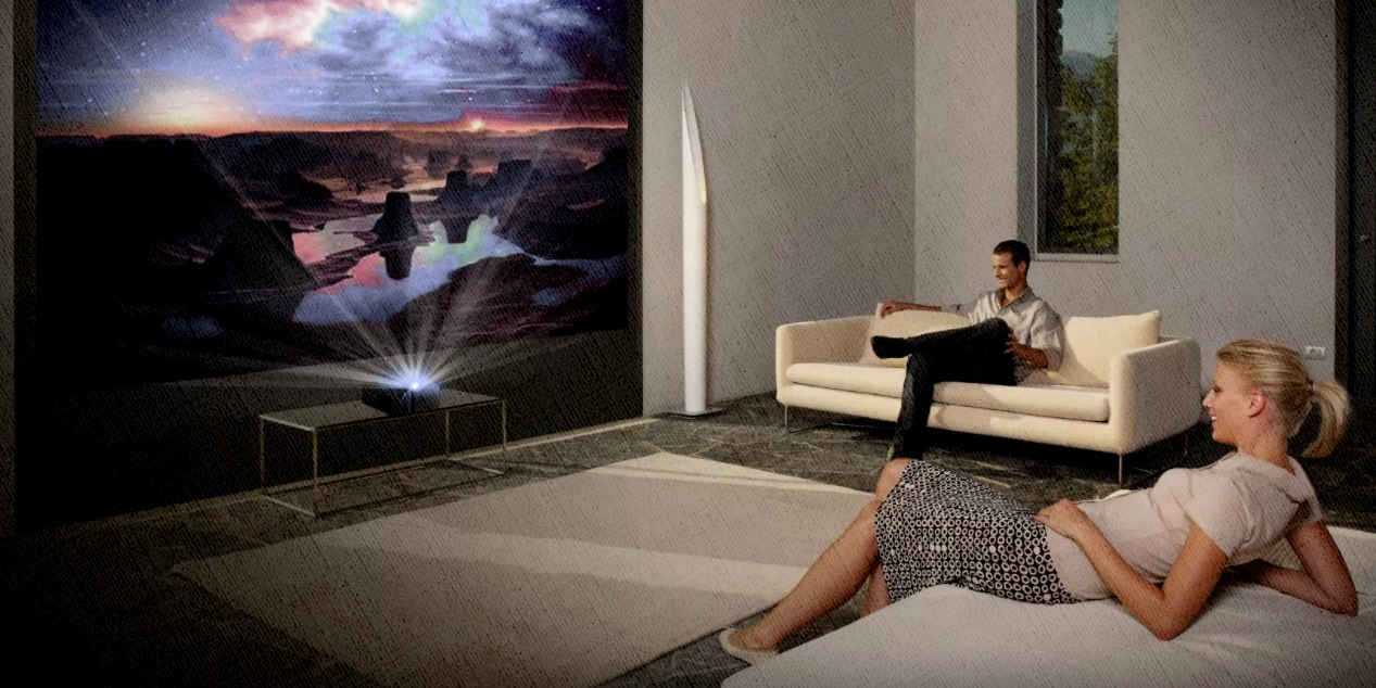 Создавался как альтернатива стационарному проектору для домашнего кинотеатра. Формирует 4К изображение. Благодаря компактным размерам и весу в 3,8 кг его легко установить в любое место комнаты. Обладает большими мультимедийными возможностями. Встроенные динамики могут использоваться как USB колонки. Внешние устройства легко подключаются через встроенные разъемы либо беспроводным способом. Световой поток в 1500 лм, автоматические настройки, обеспечивающие хорошую картинку в условиях минимума внешней засветки, высокая стоимость гаджета не предполагают его использование вне дома.