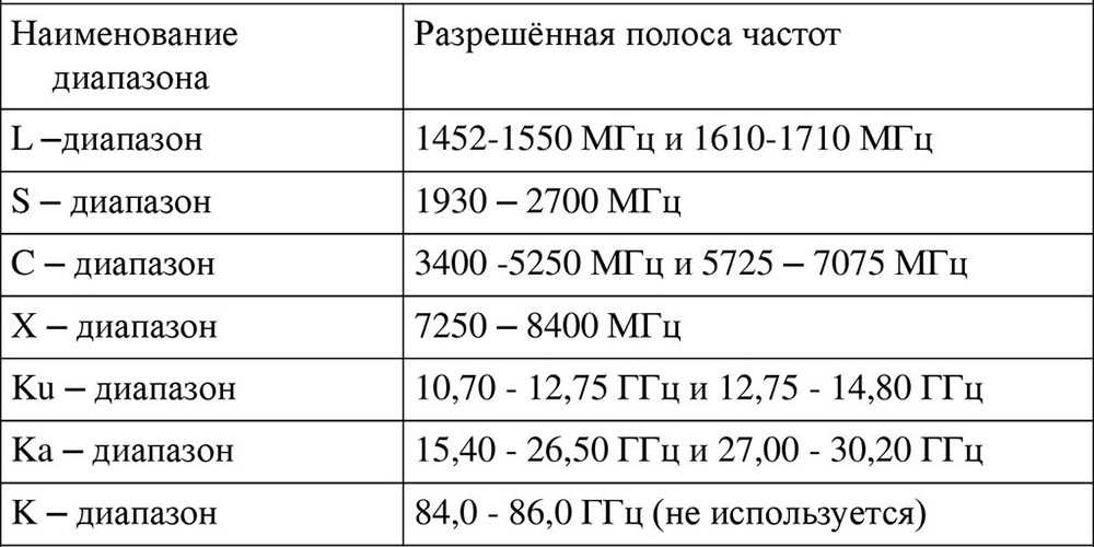 - диапазоны: K, СТ, L