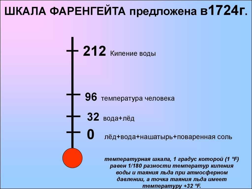 В 1724 году немецкому ученому Габриелю Фаренгейту удается разработать свою шкалу, в которой за нормальную температуру тела принято значение, равное + 96°F.