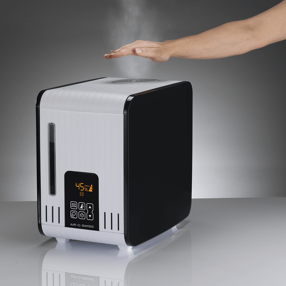 Премиум-модель от швейцарской компании благодаря большому баку может работать без долива воды на протяжении 15-20 часов. Из-за наличия деминерализующего картриджа, предварительного нагрева воды и ионизирующего серебряного стержня Ionic Silver Stick, в воздух не попадают вредные примеси, а на мебели не образуется белый налет.