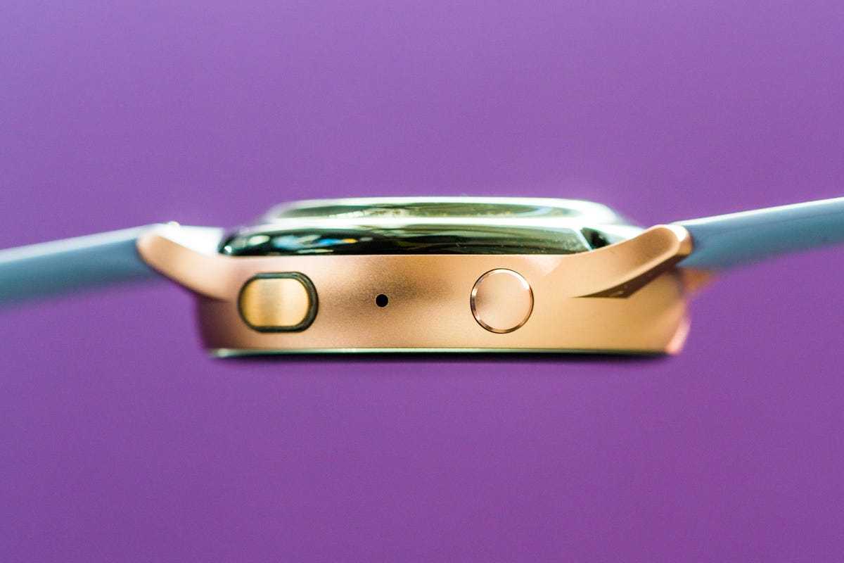 After a few days of wear, I’m impressed with how Samsung has improved the fit and feel of the watch over previous generations. The 40mm version fits nicely on my smaller wrist and the metal finish looks premium compared with the first Galaxy Watch Active. The aluminum version is available in black, silver or pink gold with a synthetic rubber strap, while the stainless-steel version comes in a silver, black or gold finish, with a leather band. The LTE version is only available in stainless steel.