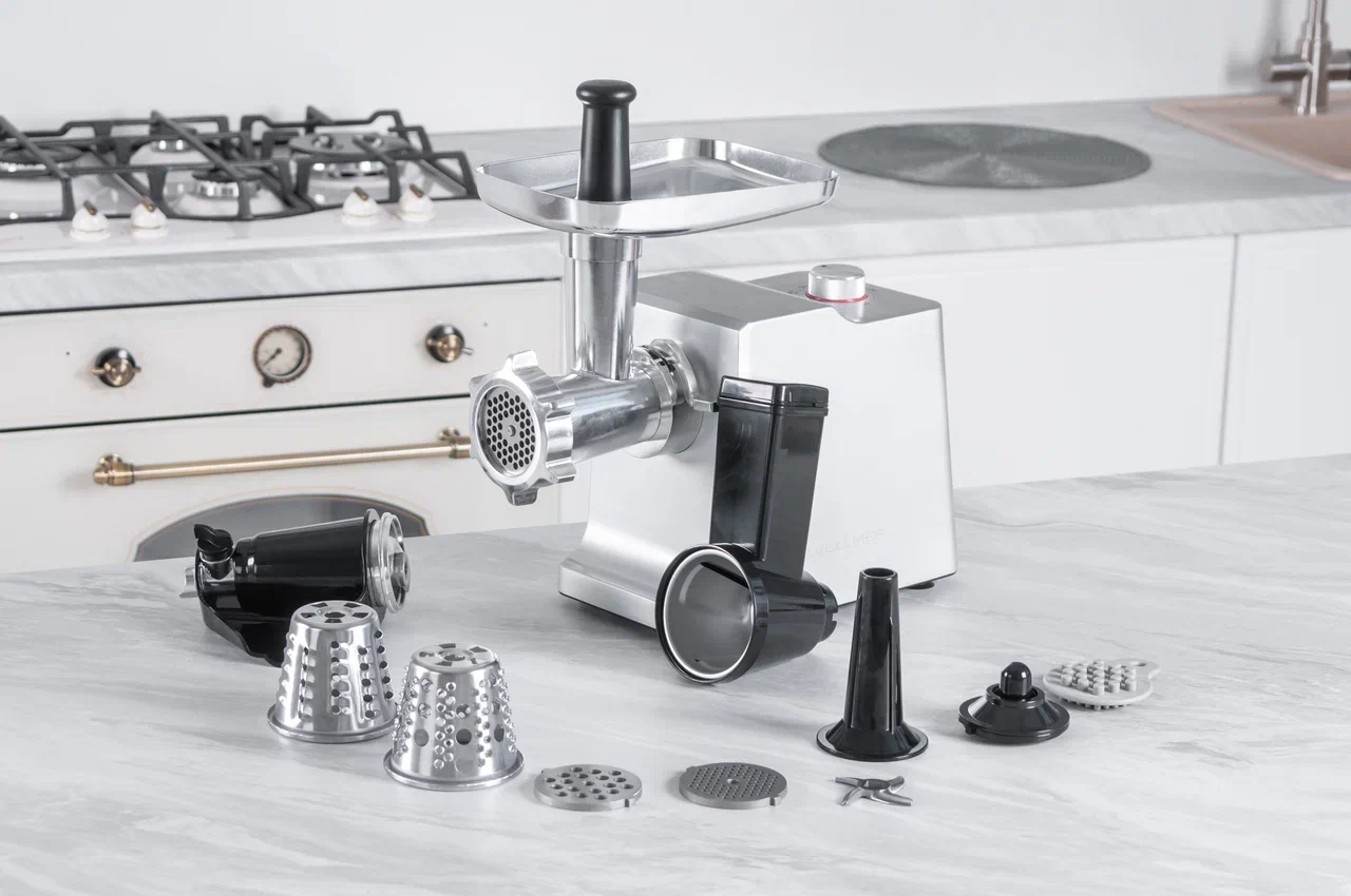 Пользуясь этой конструктивной особенностью мясорубок, Wollmer представила модель M905 с тремя фирменными насадками: