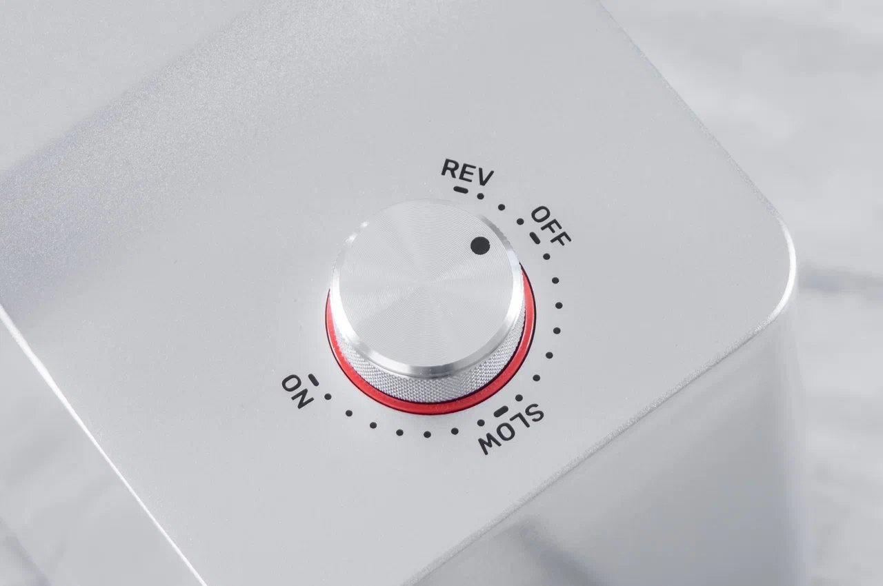 поворотный переключатель, которым удобно управлять мясорубкой: включать и выключать её, а также активировать реверс при необходимости.