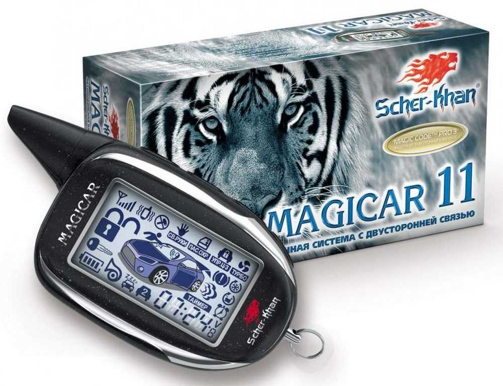 Scher-Khan Magicar 11 – относительно недорогая автосигнализация с функцией обратной связи. Она стоит от 4 000 до 5 000 рублей.