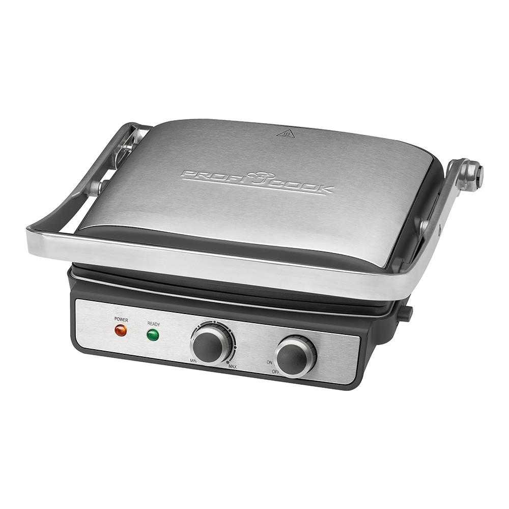 На позиции 4 ТОП-10 находится модель ProfiCook PC-KG 1029. Мощность составляет 2 кВт. Температура регулируется механически, ступенями с шагом 2 градуса. Максимальный разогрев – 200 градусов. Гбариты устройства – 32х34х14,5 см. Масса – 3,6 кг. Аппарат относится к контактному типу.