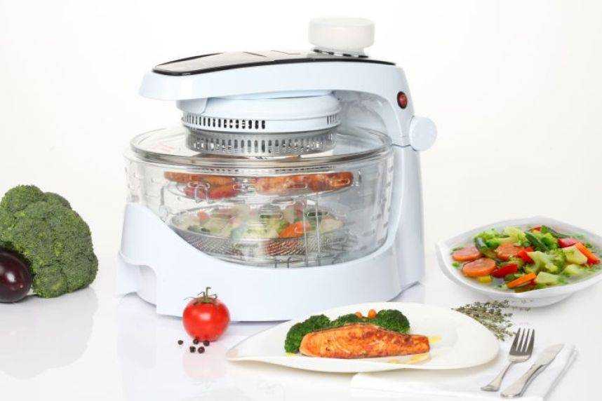 В этом приборе используется принцип равномерного распределения горячего воздуха по всему объему, поэтому домашний аэрогриль специалисты называют иногда конвекционной печью. В современных моделях задается не только температурный режим, но и скорость вращения вентилятора, поэтому пересушить продукты во время приготовления умное устройство не позволит.
