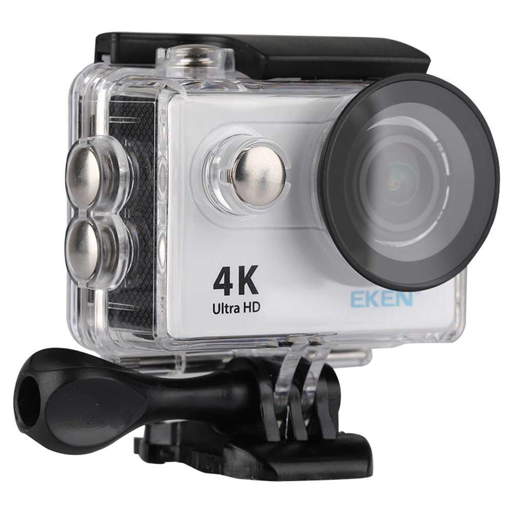 H9R от китайской компании EKEN – это недорогая экшн камера, выполненная в нескольких цветах. Максимальное качество видео – 4K с 25 к/с. Модель оснастили CMOS матрицей с углом обзора 140 градусов. Ее разрешение – 4 Мп. Запись видео осуществляется в формате H.264, что подразумевает сжатие без потери качества. Дисплей – 2 дюйма. Управление осуществляется дистанционно. Есть режим съемки фото. Есть USB разъем для синхронизации с ПК, Wi-Fi для удаленного управления и HDMI для просмотра видео на телевизоре. Запись ведется на карту памяти типа microSD. Отличается хорошей комплектацией, которое включает различные переходники, крепления и бокс для съемки под водой. Вес – 62 грамма.