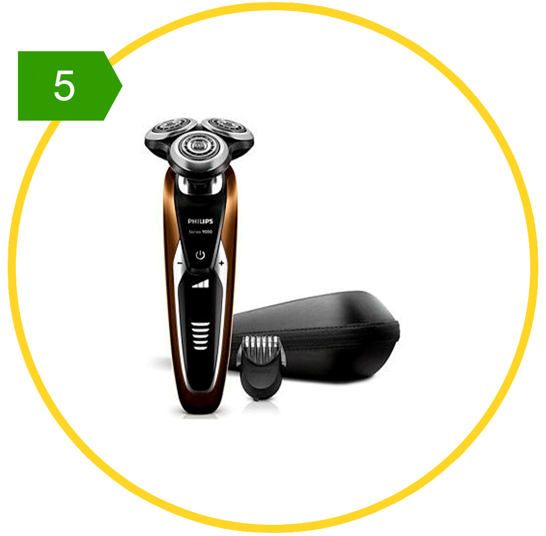 Одна из лучших моделей Philips S9711, созданная для сухого и влажного бритья. Работает на автономном аккумуляторе и имеет три плавающих головки, которые превосходно соприкасаются с любым типом лица и позволяет выполнять идеальное скольжение. В сборке идет удобный чехол для дороги и триммер. Самое приятное, что устройство водонепроницаемое и его можно брать с собой в ванну или в душ, не беспокоясь о поломке. Модель работает автономно приблизительно 50 минут. Для контроля заряда производитель внедрил индикатор, показывающий процент зарядки. Чтобы побриться, вполне хватит минут 10. Внешний вид сделан в виде черного и серого цвета. Материал — пластик. Касательно удобства, то здесь ручка полностью укладывается в ладонь, не выскальзывает. В подарок идет насадка для стрижки волос.