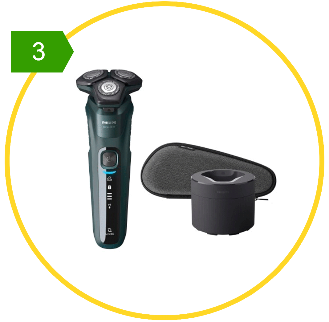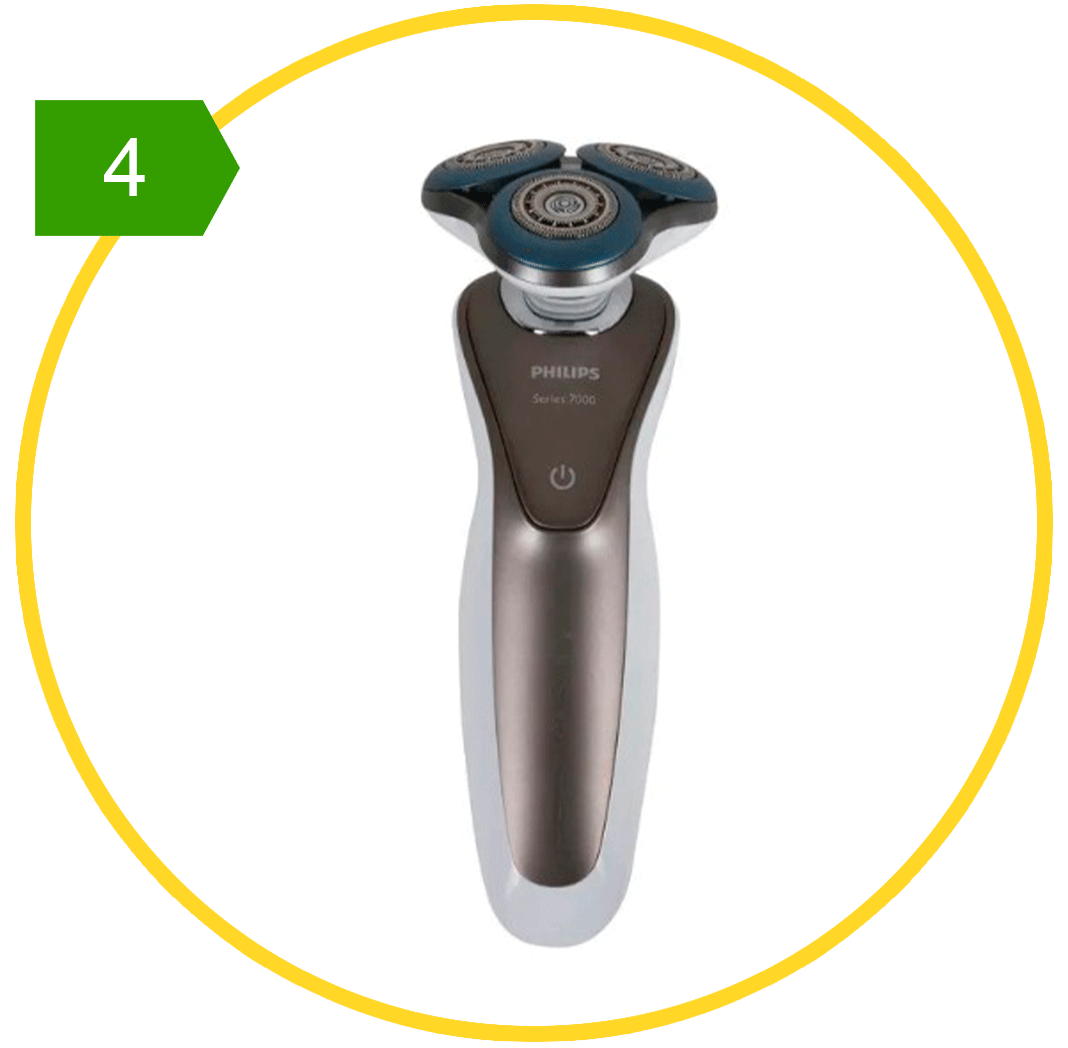 Относится к лучшему сегменту среди роторных бритв. Если раньше пользовались популярным станком «Gillette», то после покупки данного девайса ощутите очевидную разницу. Модель подойдет даже для проблемных типов кожи. Позволяет бриться на сухую, раздражения меньше, чем от привычного станка с использованиям пены. Понравится бесшумность работы и легкий вес. Известный производитель Philips сделает утро по-настоящему добрым. Обладает триммером. Заряжается за 1 час. Время автономной работы хватает примерно на 55 минут или на один сеанс бритья.