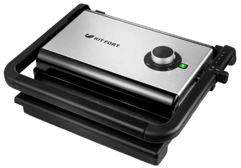 Гриль мощностью 2000 Вт со стильным дизайном, который впишется в современный интерьер кухни. Гриль имеет рифленую поверхность и обладает антипригарным покрытием. Предусмотрен отсек для жира, регулятор температуры и датчики нагрева. Гриль также оснащен функцией автоотключения в случае перегревания. Габариты рабочей поверхности составляют 29,7х23,5 см. Гриль также можно использовать как открытый, но у него есть один недостаток — пластины в нем не снимаются.