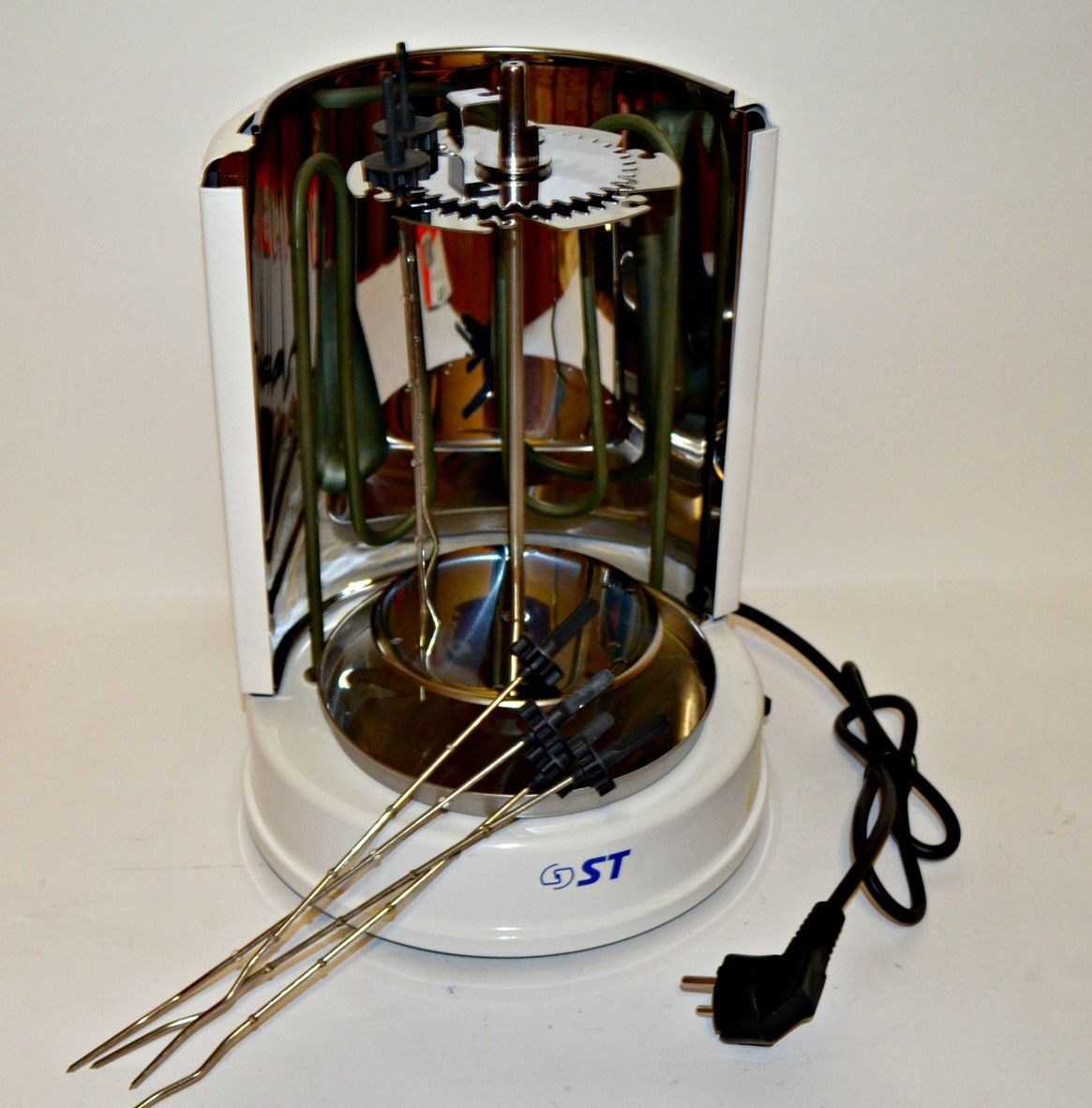 Нужно обратить внимание на расположение нагревателя: он может находиться сбоку или по центру. В первом случае прибор способен приготовить меньшее количество еды, так как шпажки у него короче. При центральном расположении прогрев происходит равномерно и еда прожаривается лучше