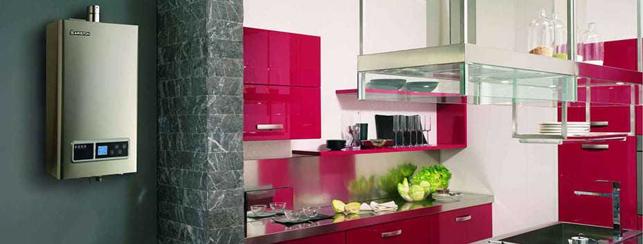 - Проточный – он не имеет своей емкости или отсека для нагрева воды, поэтому нагревается вода в процессе поступления и прохождения по внутренним трубам. Обычно проточные газовые колонки имеют небольшие размеры и устанавливаются в различные помещения, но с обязательно хорошей вентиляцией;