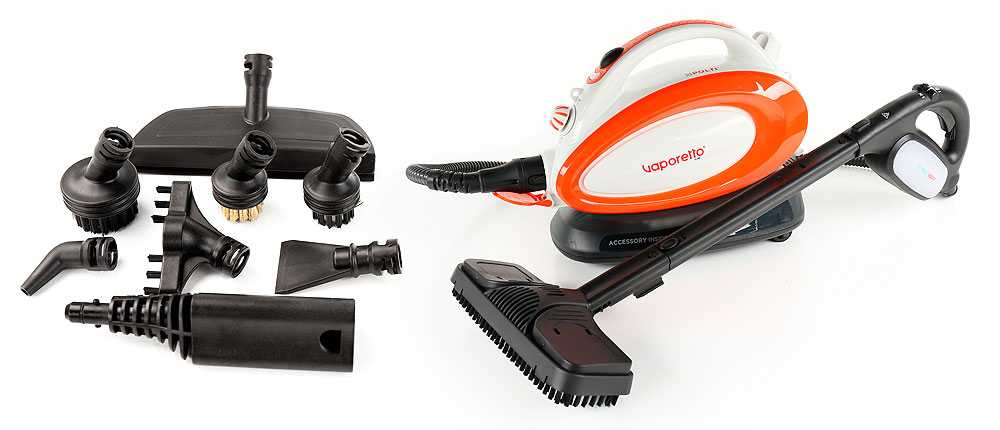 По нашему мнению это лучший пароочиститель для дома с большой площадью. Аппарат справится с загрязнениями любого типа без применения химии благодаря высокому давлению пара и большому набору насадок (2 круглых щетки разного диаметра, форсунка, сопло, шланг с пистолетом, полотер и ткань для полировки).