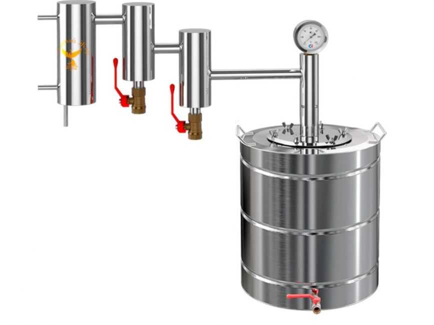 . Устройство успешно объединяет в себе качественный дистиллятор из пищевой стали и надежную и производительную ректификационную колонну. При стоимости в 35 тысяч рублей конструкция обладает двойной системой охлаждения дистиллята, несколькими термометрами, двумя сухопарниками. Ректификатор устройства снабжен прибором для отлавливания флегмы и вместительным дефлегматором. В набор системы входит комплект трубок, запасной сухопарник и книга с рецептами. Среди минусов конструкции стоит выделить небольшую толщину стенок и отсутствие защитного покрытия на металлическом корпусе.