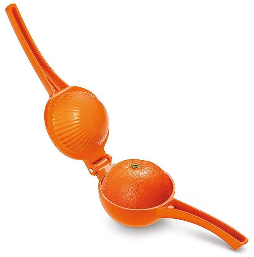 Прибор изготовлен из металла и пластика оранжевого цвета. Предназначен для приготовления апельсинового сока. Прочный и простой в использовании. Есть возможность очистки в посудомойке.