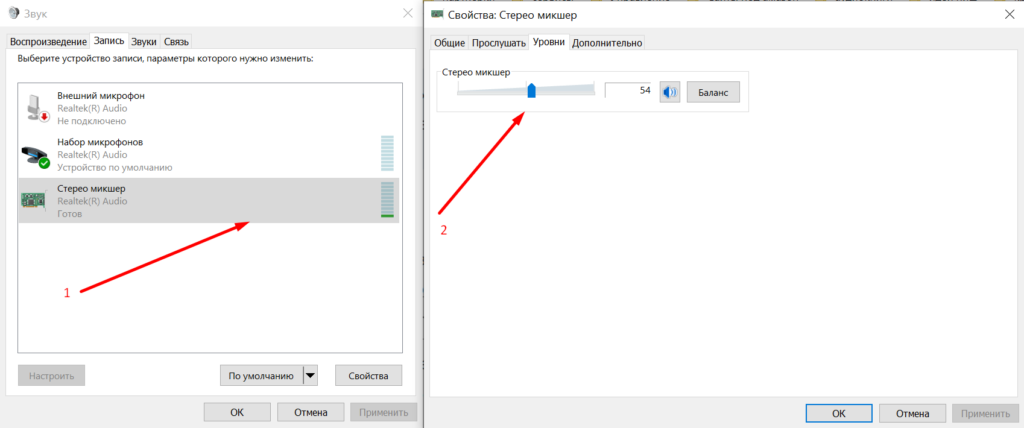 Также можно зайти на компьютере в «Панель управления» и поменять настройки. Возможно, поможет увеличение громкости. В папке «Оборудование и звук» нужно найти кнопку «Управление звуковыми устройствами». После этого во вкладке «Запись» нажать «Стереомикшер» и включить высокую громкость.