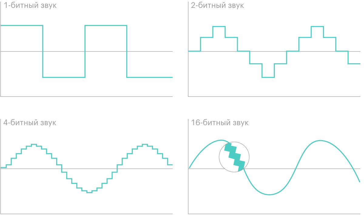 Чем больше данных при оцифровке получится сохранить, тем ближе результат к исходной форме аналогового сигнала. Разрядность большинства музыкальных файлов в интернете — 16 бит
