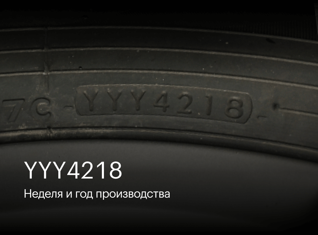Важно узнать срок изготовления покрышек, указанный на боковине в виде четырех цифр, обозначающих неделю и год. Срок годности покрышек составляет около 5 лет, после чего материал может трескаться и перестает быть эластичным